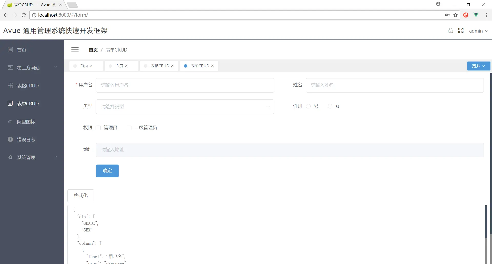CRUD和FORM使用说明————根据配置json文件自动生成CRUD和FORM,并且配置字典接口,自动匹配字典