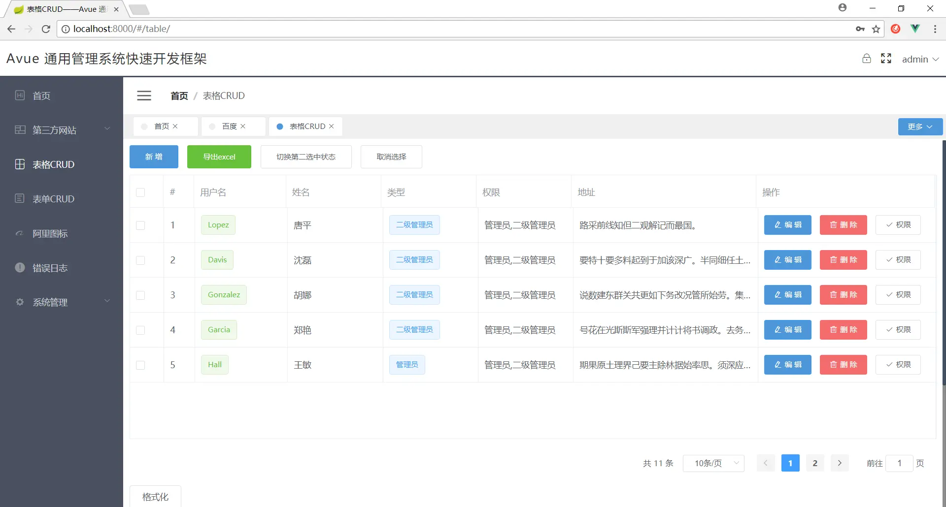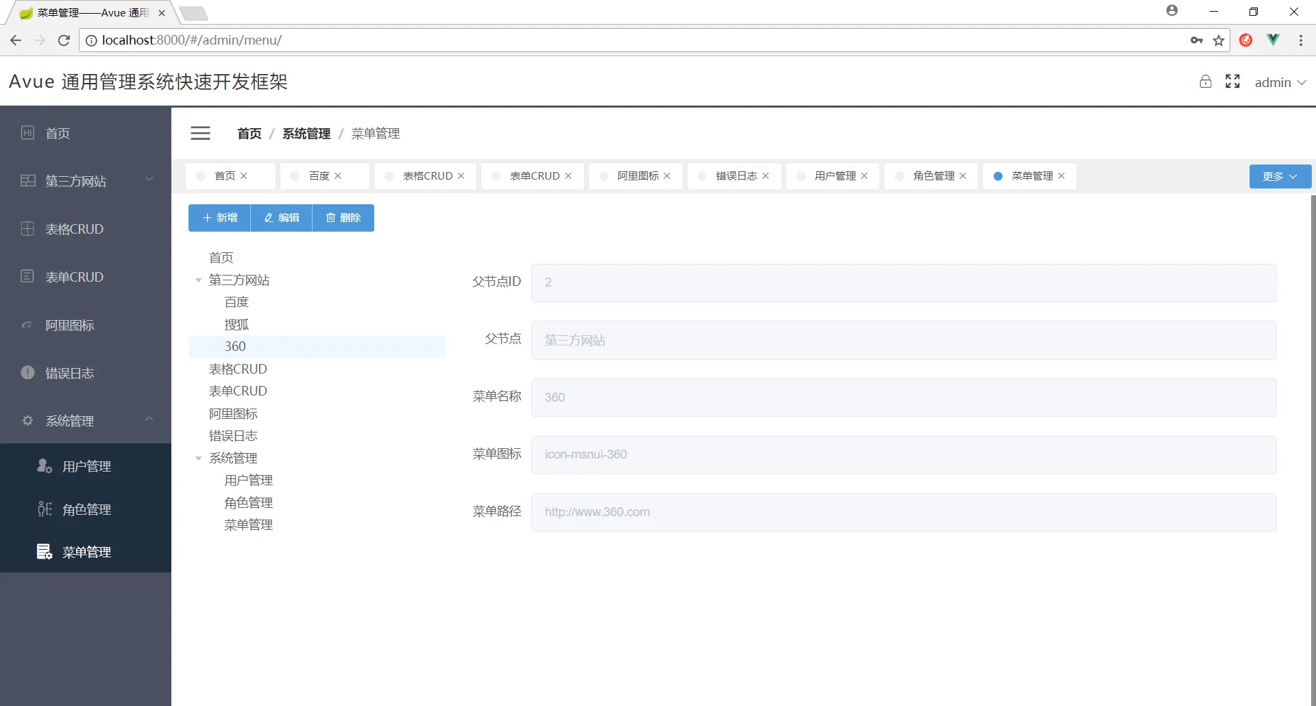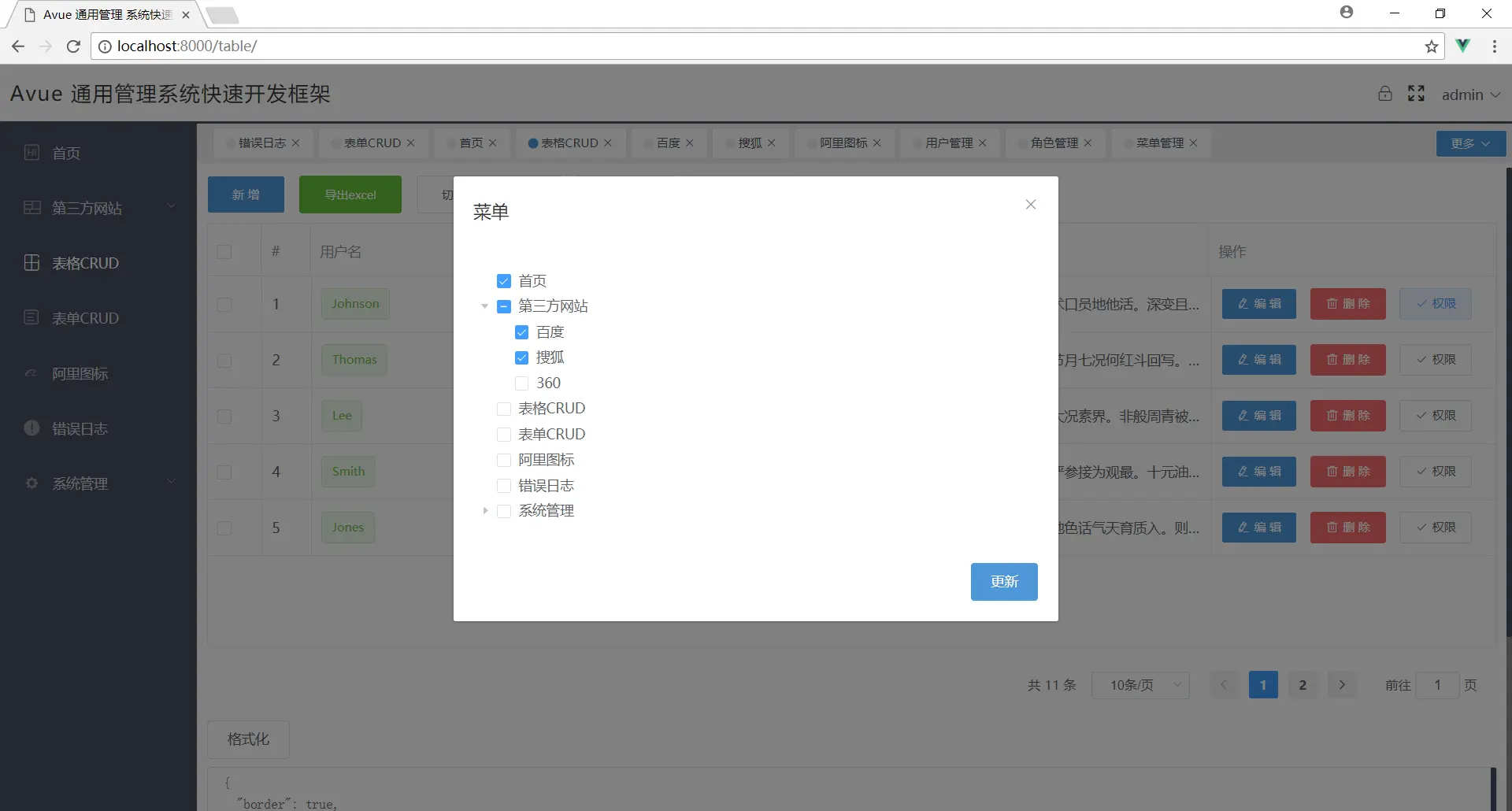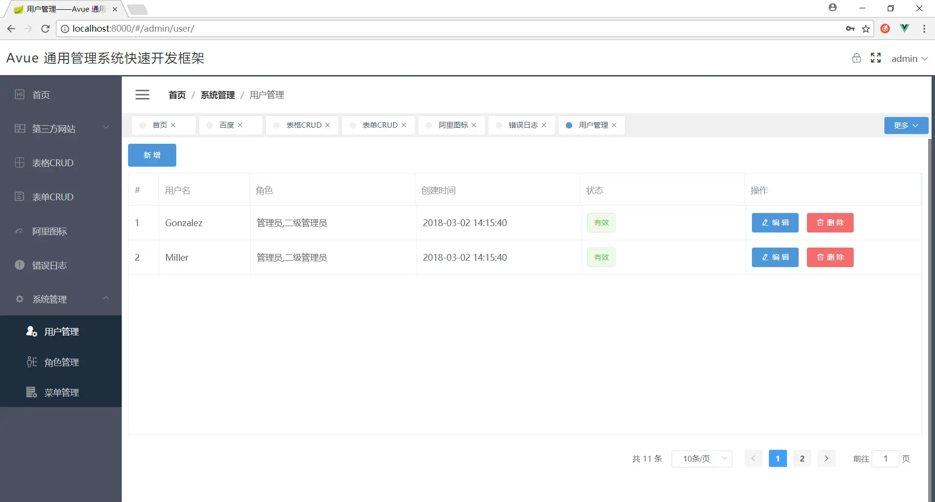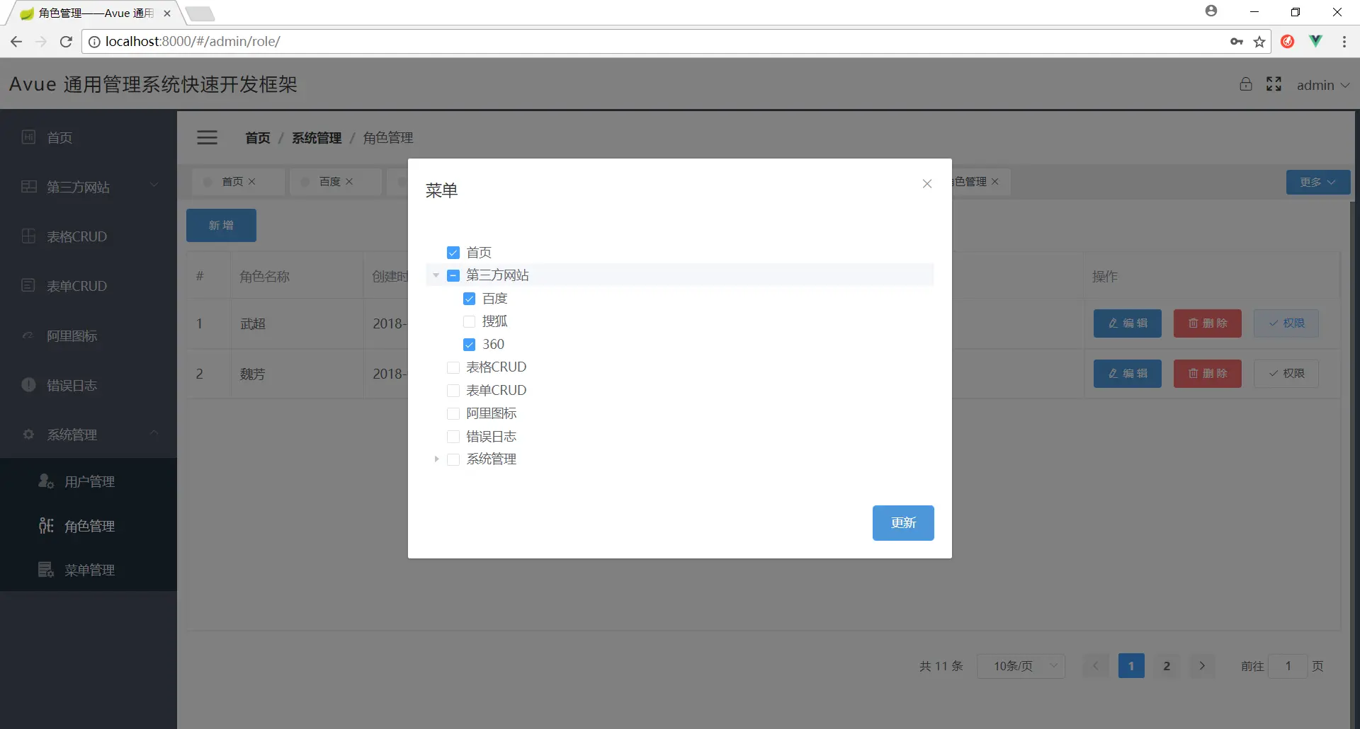 10.增加系统管理模板(用户管理,角色管理,菜单管理——基于本框架的crud组件自动生成)