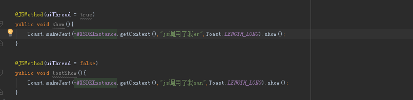 4、新建一个类,继承WXModule,在自定义一个方法,如(注,自定义方法上面必须加@JSMethod):