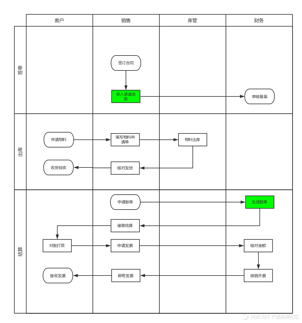 - 如果业务部门还没有落地可行的业务方案,PM就需要和业务负责人一起梳理、制定业务流程,梳理业务中有哪些业务角色参与工作?各个角色参与了哪些工作阶段?业务角色是否跨部门协作?业务环节是否可以通过部门进行拆分?