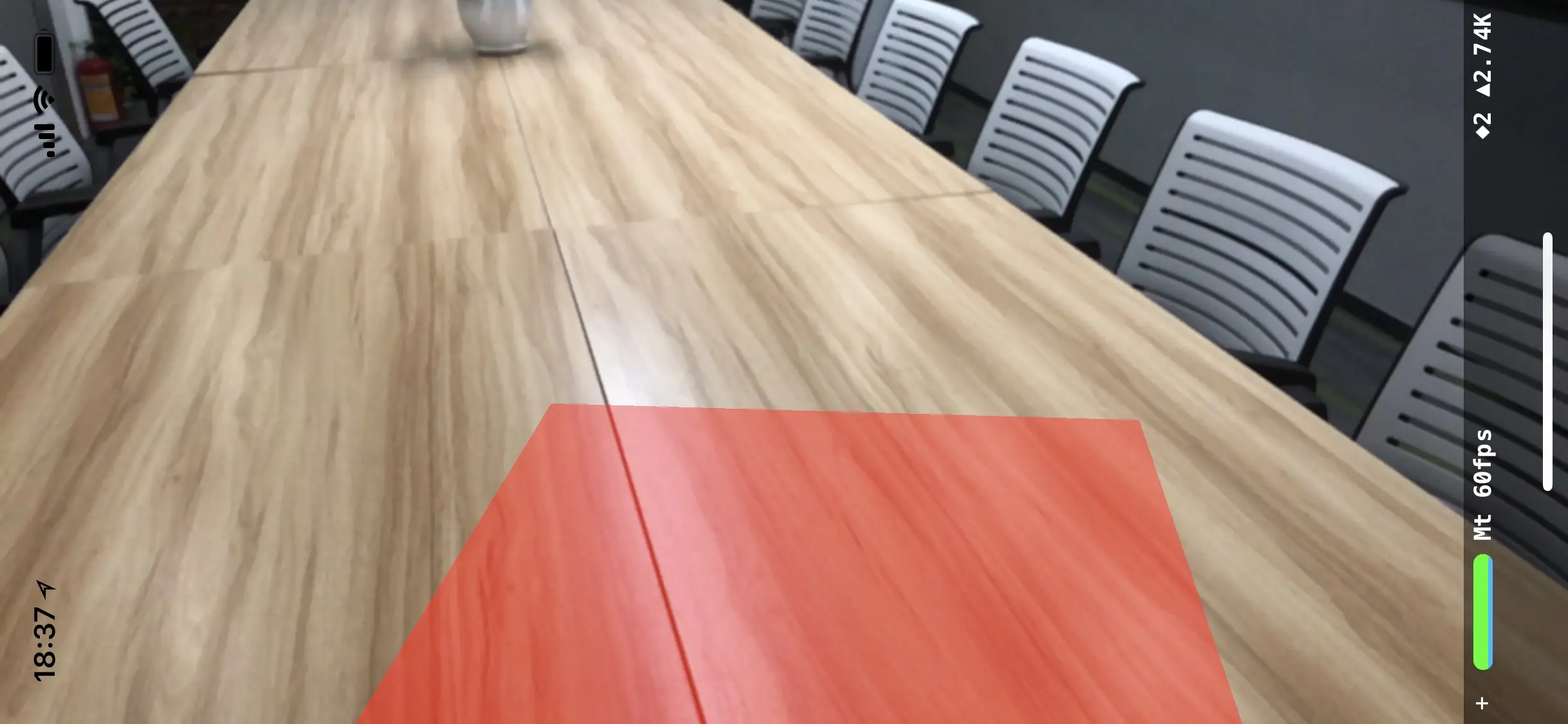 这样就完成了一个最简单的AR应用,当识别出环境中的平面时,会在上面添加一个红色的矩形,并渐隐消失。