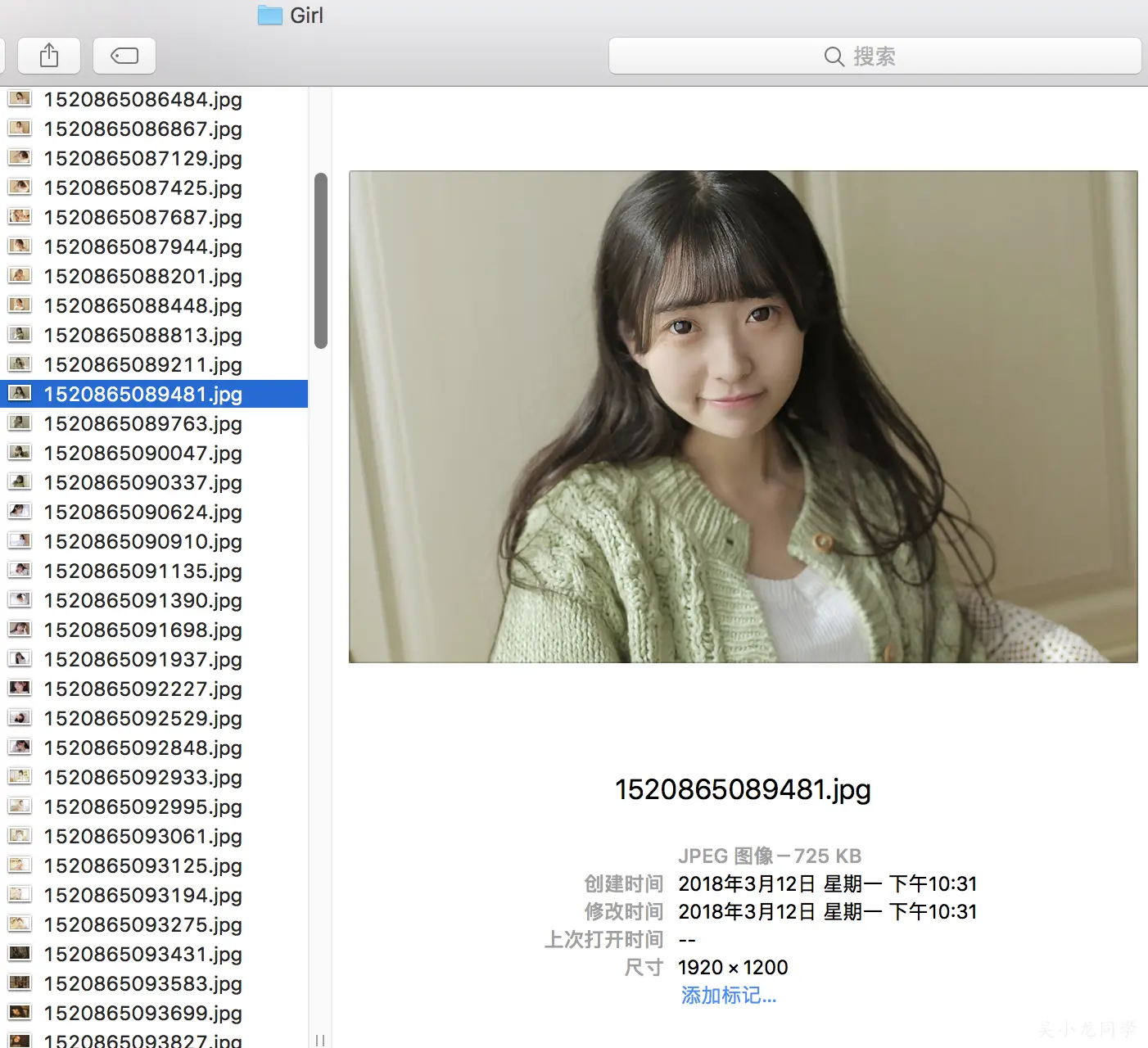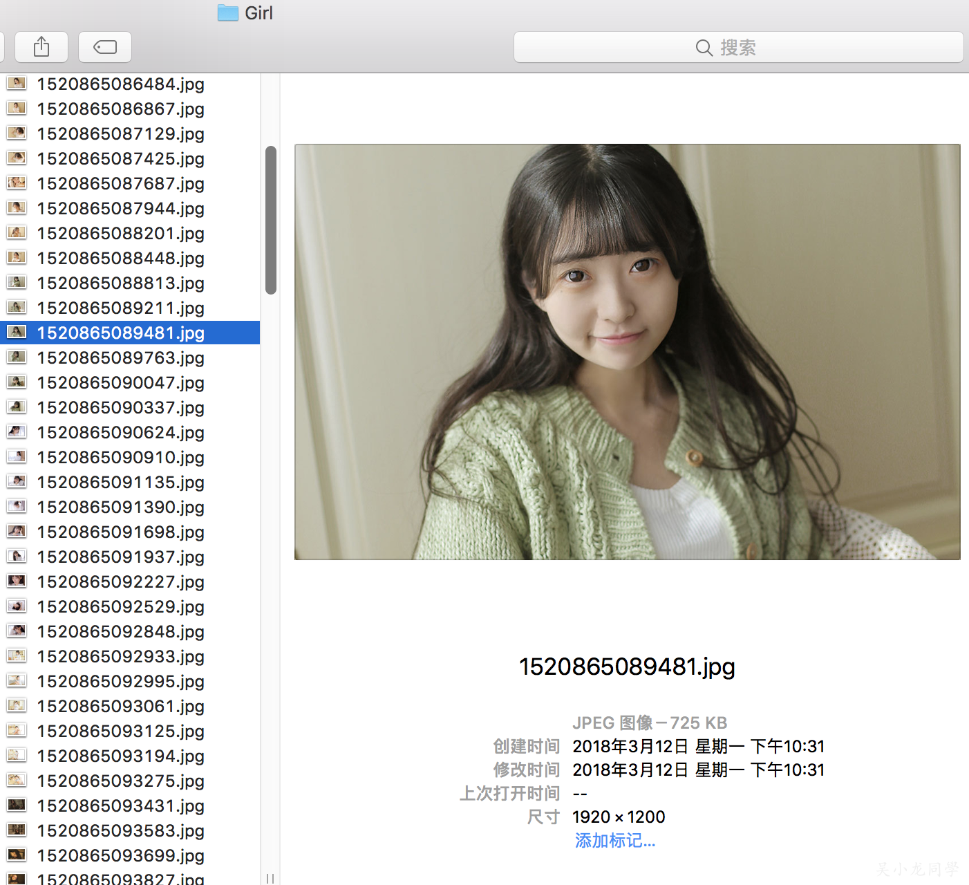 2、这里保存本地路径 /Users/wuxiaolong/Desktop/Girl/我写死了,需要读者改成自己的,如果直接是文件名,保存路径将是项目目录下。