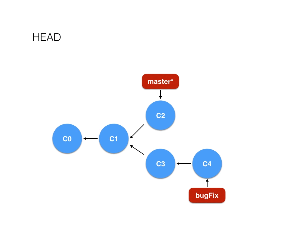 HEAD通常情况下是指向分支名的(如bugFix)。在你提交时,改变了 bugFix的状态,这一变化通过HEAD变得可见。