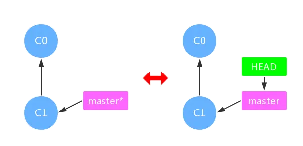 分离的HEAD就是让其指向了某个具体的提交记录而不是分支名。