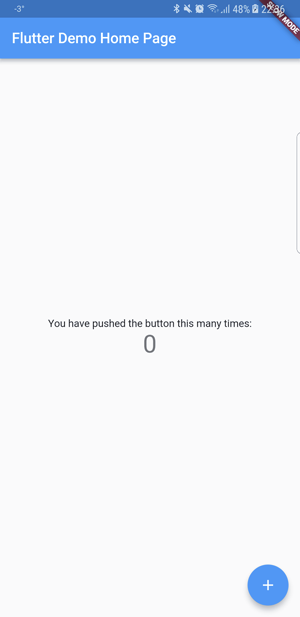 点击底部浮动动作按钮来增加显示的数字。我们现在不会深入研究其代码,但我们会用 Flutter 发现一些有趣的功能。