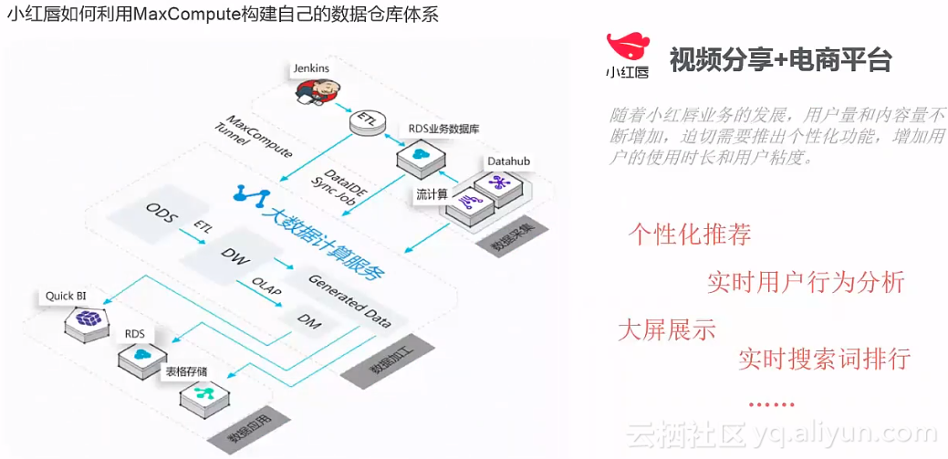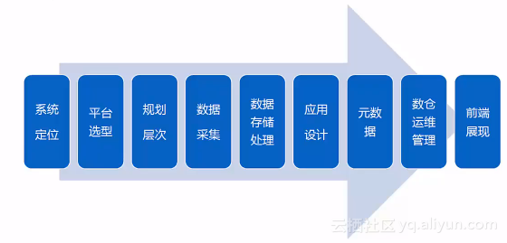 基于阿里云数加搭建大数据仓库的整个业务流程如下所示: