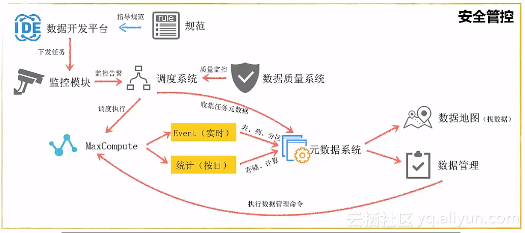 数据治理分为保障机制、管理、内容建设几个方面,并且贯穿数据开发的整个过程: