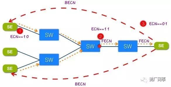 ECN(Explict Congestion Notification)是基于IP的端到端流控机制。