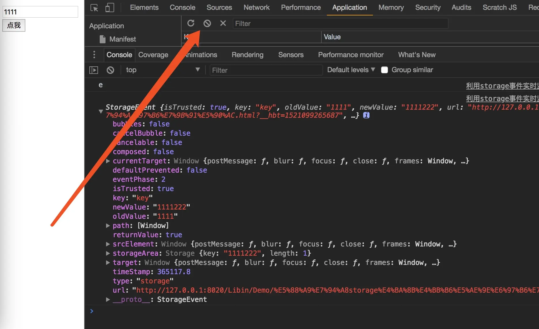 oldValue:更新前的值。如果该键为新增加,则这个属性为null。 newValue:更新后的值。如果该键被删除,则这个属性为null。 url:原始触发storage事件的那个网页的网址。