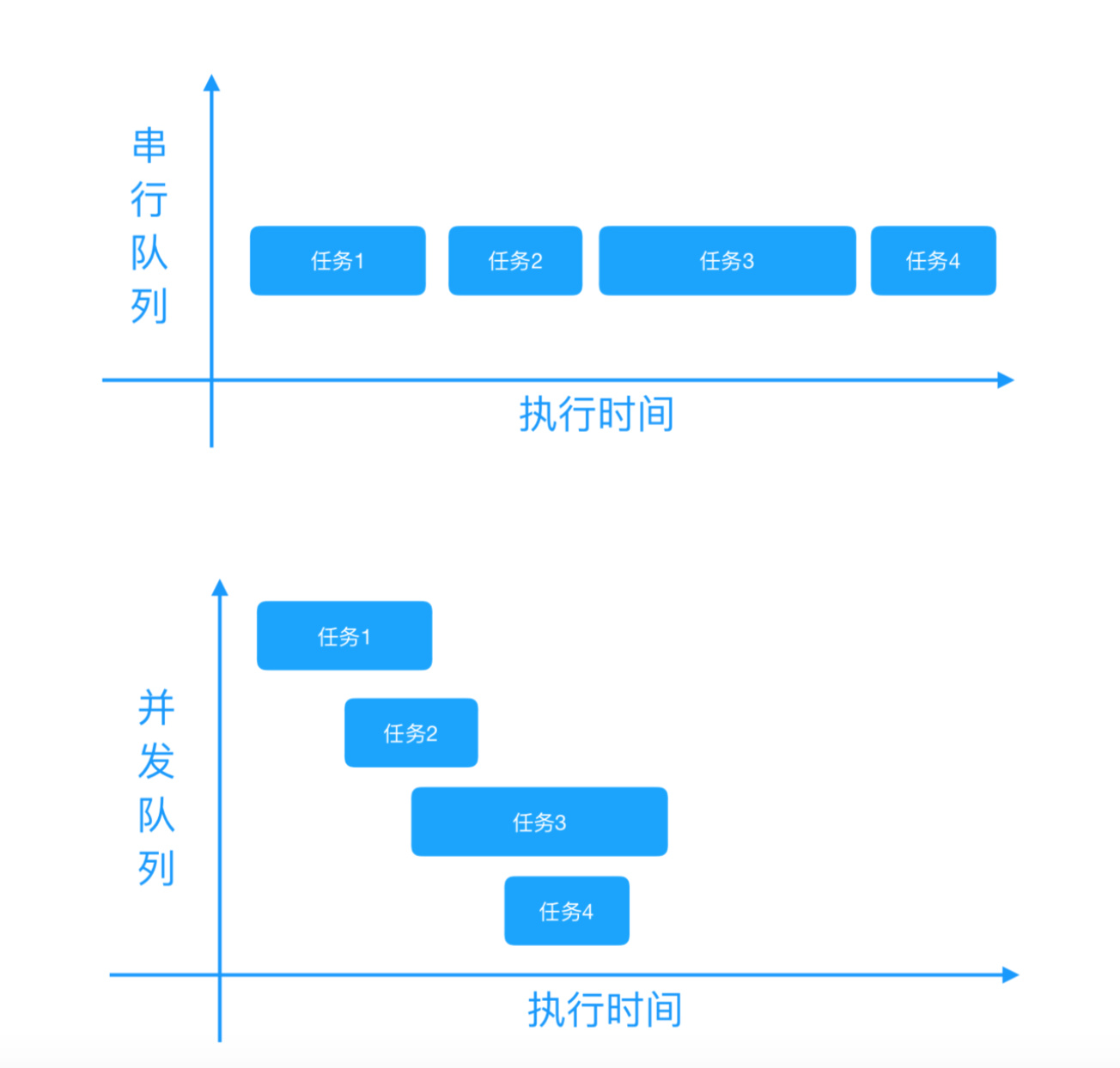 串行队列:队列中的任务只会顺序执行,一个任务执行完毕后,再执行下一个任务