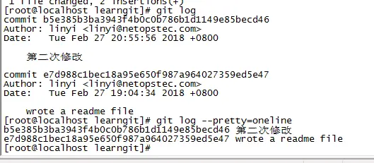 git log // 可以查看最近三次commit的内容和区别,如果信息输出的太多,看的眼花缭乱的,可以试试加上--pretty=oneline参数;