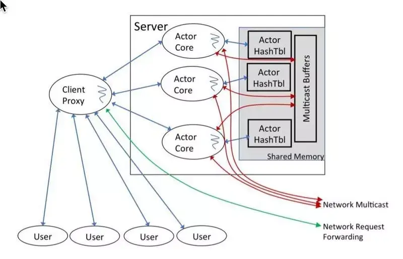 在无协调 actor 模型中,每个 actor 对应一个线程,对任何一个共享状态都有自己的一份私有拷贝,并通过异步广播将更新通知给其他 actor。在多核服务器上,这种模型比传统的共享内存模型的性能要高出一个数量级。