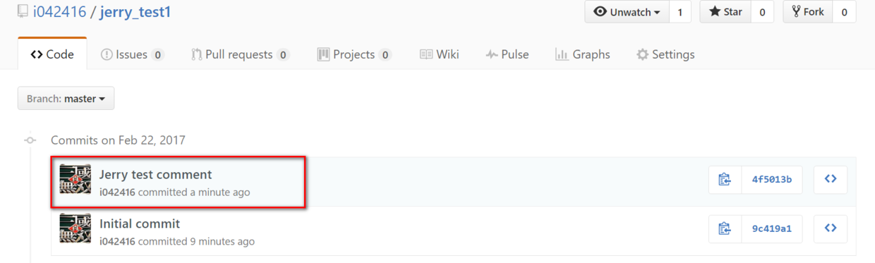 此时就可以直接把这个改动commit并且push到github的空仓库里。