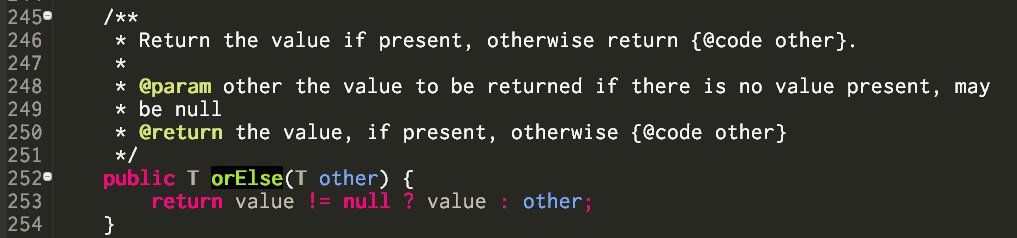 这个Optional工具类的实现也很简易,orElse仅仅是一个三元表达式。