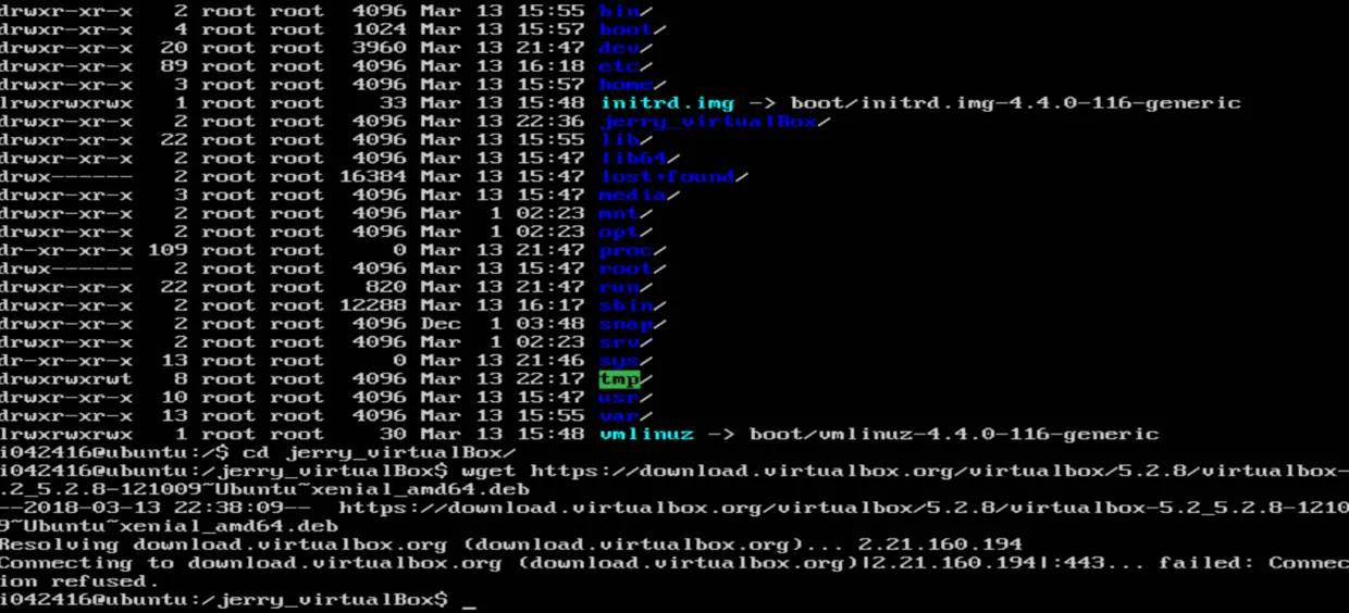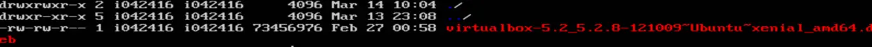 使用wget下载virtualbox安装包:https://download.virtualbox.org/virtualbox/5.2.8/virtualbox-5.2_5.2.8-121009~Ubuntu~xenial_amd64.deb