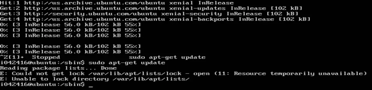 之后apt-get update. 如果遇到Could not get lock /var/lib/apt/lists/lock - open: Resource temporarily unavailable - unable to lock directory /var/lib/apt/lists的错误信息: