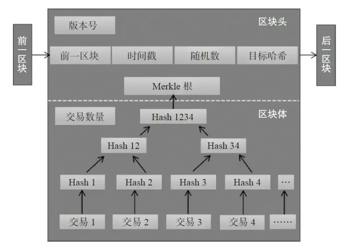 比特币区块链系统中的采用的是Merkle二叉树,它的作用主要是快速归纳和校验区块数据的完整性,它会将区块链中的数据分组进行哈希运算,向上不断递归运算产生新的哈希节点,最终只剩下一个Merkle根存入区块头中,每个哈希节点总是包含两个相邻的数据块或其哈希值。