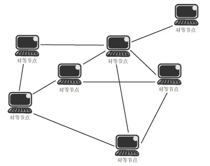 P2P网络(peer-to-peer network,对等网络)是一 种在对等者(peer)之间分配任务和工作负载的分布 式应用架构,是对等计算模型在应用层形成的一种组 网或网络形式。因此,从字面上,P2P可以理解为对 等计算或对等网络,P2P网络示意图如图2-5所示。国 内的迅雷软件采用的就是P2P技术。区块链系统是建 立在IP通信协议和分布式网络的基础上的,它不依靠 传统的电路交换,而是建立于网络通信之上,完全通 过互联网去交换信息。网络中所有的节点具有同等的 地位,不存在任何特殊化的中心节点和层级结构,每 个节点均会承担网络路由、验证数据区块等功能。网 络的节点根据存储数据量的不同可以分为全节点和轻 量级节点,全节点存储了从创世区块以来的所有区块 链数据(比特币网络现在大约有几十GB,且还在不 断增长中)。全节点的优点是进行数据校验时不需要 依靠别的节点,仅依靠自身就可以完成校验更新等操 作,缺点是硬件成本较高。轻量级节点只需要存储部 分数据信息,当需要别的数据时可以通过简易支付验 证方式(Simplified Payment Verification,SPV)向邻 近节点请求所需数据来完成验证更新。