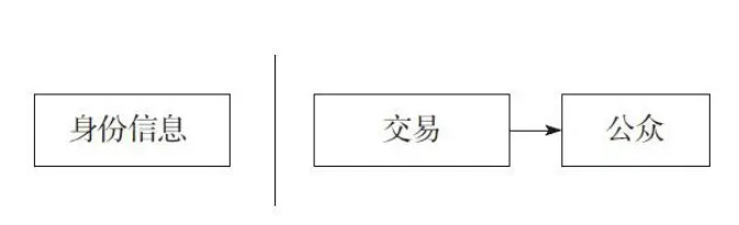 传统隐私模型(见图2-7)为交易的参与者提供 了一定程度的隐私保护,第三方不会交出交易者的个 人身份信息,公众所得知的只是某个人将一定数量的 货币发给了另外一个人,但是难以将该交易与某个特 定身份的人联系起来,公众无法知道这人到底是谁。 这同股票交易所发布的信息是类似的,每一手股票买 卖发生的时间、交易量是记录在案且可供查询的,但 是交易双方的身份信息却不予透露。但实际上,交易 双方的个人信息是存放在第三方机构,所以一定程度 上交易参与者的隐私信息还是会有泄露的风险。