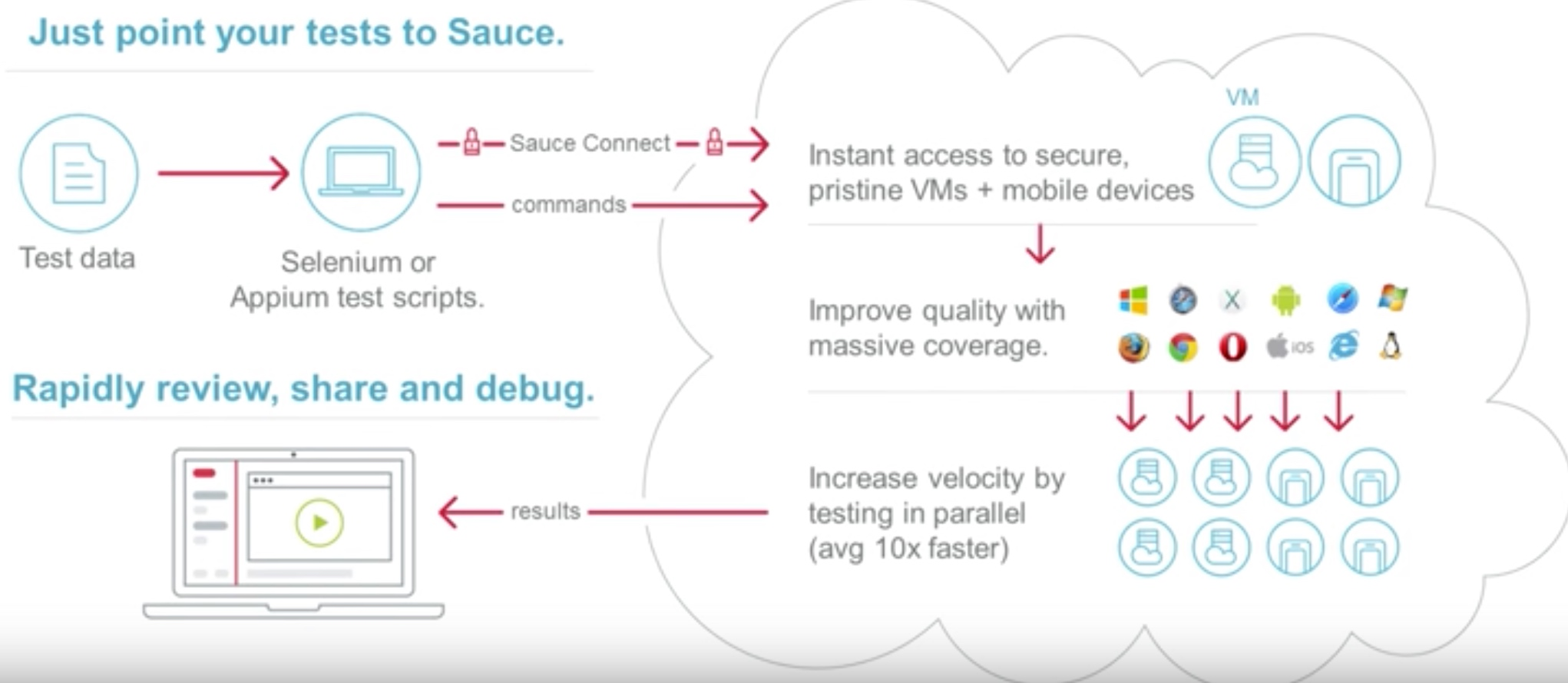 - 可以只写测试代码,然后利用类似 saucelabs 云服务来解释命令.