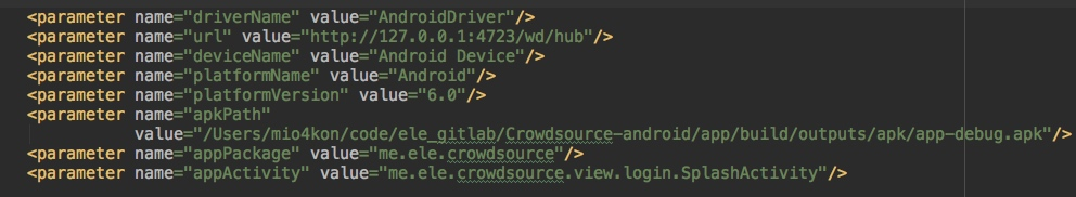 @Parameters({"driverName", "url", "deviceName", "platformName", "platformVersion", "apkPath", "appPackage", "appActivity"})