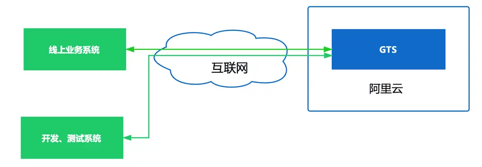 这种输出形式面向于非阿里云的用户,使用更加方便、灵活,业务系统只要能连接互联网即可享受GTS提供的云服务(与公有云输出的差别在于客户端部署于用户本地,而不在云上)。