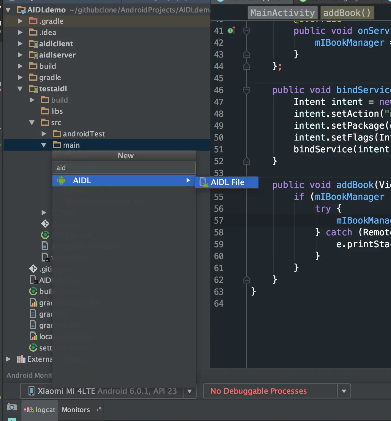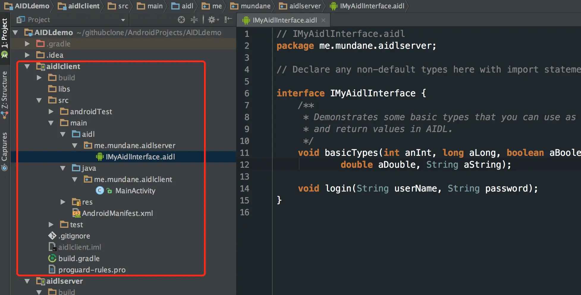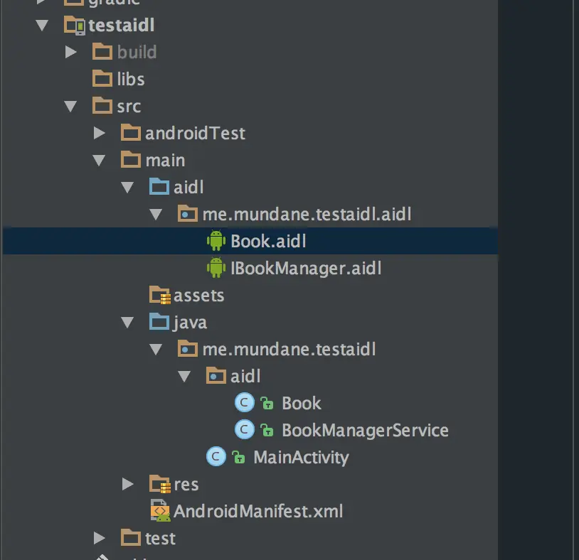 为了方便AIDL的开发, 建议把所有和AIDL相关的类和文件全部放入一个包中, 方便整个复制