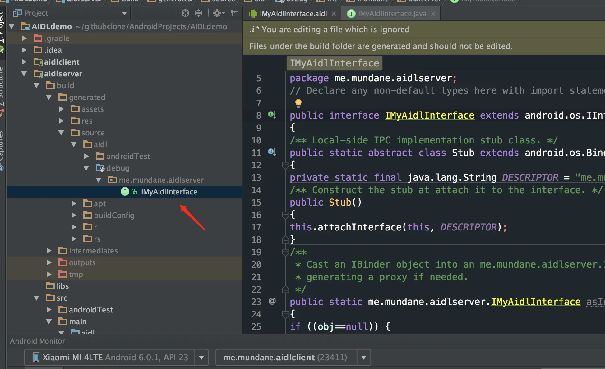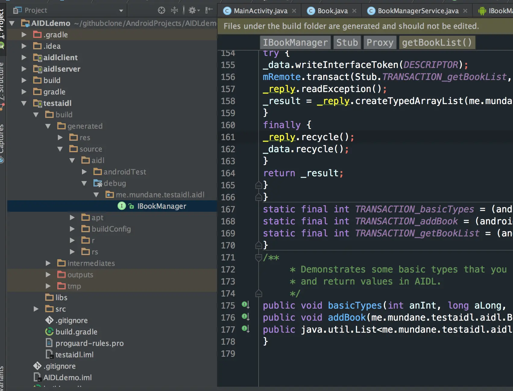 现在我们Make Project, Android Studdio自动为我们生成Binder类