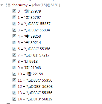 虽然我不知道Emoji在String中到底是怎么样的,但是我可以用charAt()方法去查看它的地址,发现charAt()后打印出这个(我用了另一个Emoji)