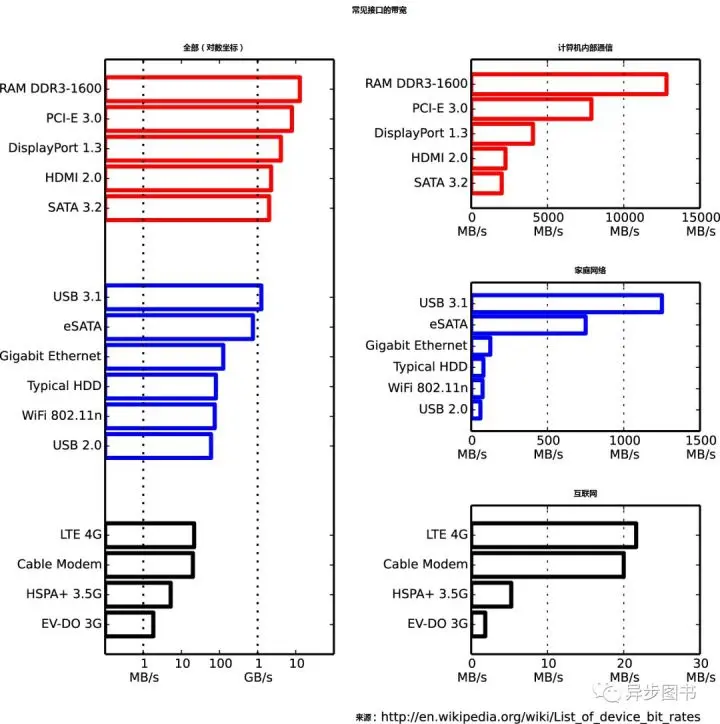 图1-3 各种常见界面的连接速度(图片来自Leadbuffalo)