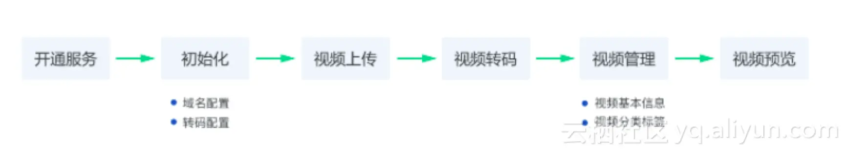 进入视频点播产品页面,点击立即开通,开通视频点播服务,进行初始化配置,用户可以在控制台进行视频上传,转码设置、视频管理和视频预览等操作。