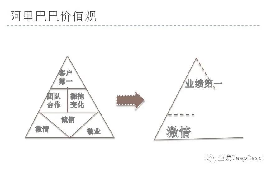 但现在,马云加强了自己的观点:任何人都应坚持业绩和价值观的双重目标,缺一不可。