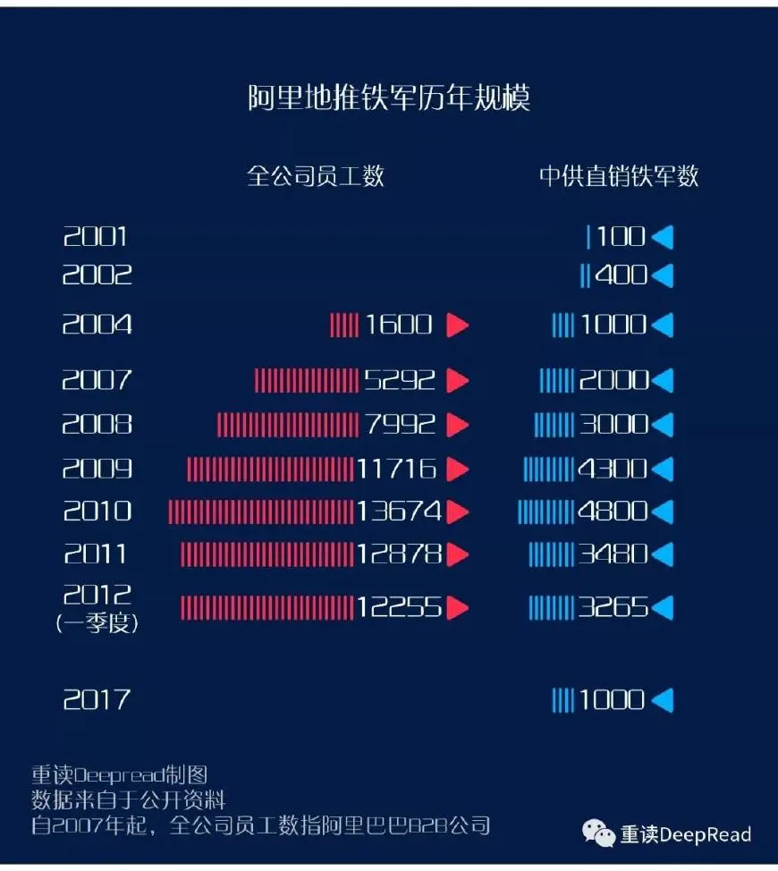 业务上如此,阿里巴巴B2B公司的庞大人力也在变革的考虑范围内。由于中供的价格高昂,客户很难自主化下单,客户还是需要销售员的助推和服务,因此中供的分流是小批量、多方向的疏导。一达通、速卖通等新业务就是卫哲渐进式分流地推铁军的目的地。