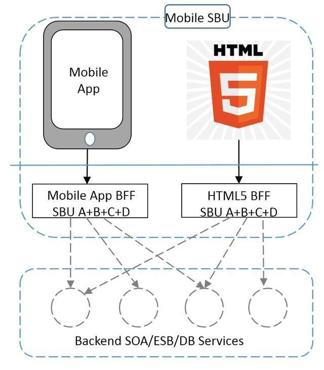 但是随着时间的推移,特别是近两年,使用无线应用的用户数成倍增长,无线应用的功能也变得越来越复杂,康威定律逐渐发挥作用,无线SBU和其它业务SBU之间的沟通协调成本越来越高,相互之间还常常因沟通不畅而产生摩擦,交付效率越来越低。同时,单块BFF还具有代码逻辑耦合臃肿,集群故障概率高,技术栈绑死,阻碍快速创新等单块架构固有的缺陷。