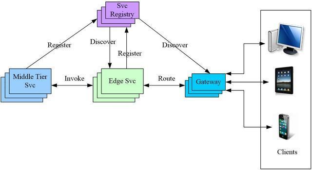 服务注册表(Service Registry),负责网关到边界服务,边界服务到中间层服务,以及后台服务之间的软路由和软负载。