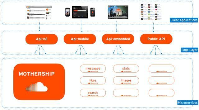 微服务层(Microservices),SoundCloud后台微服务的统称,例如messages、stats、likes服务等等。
