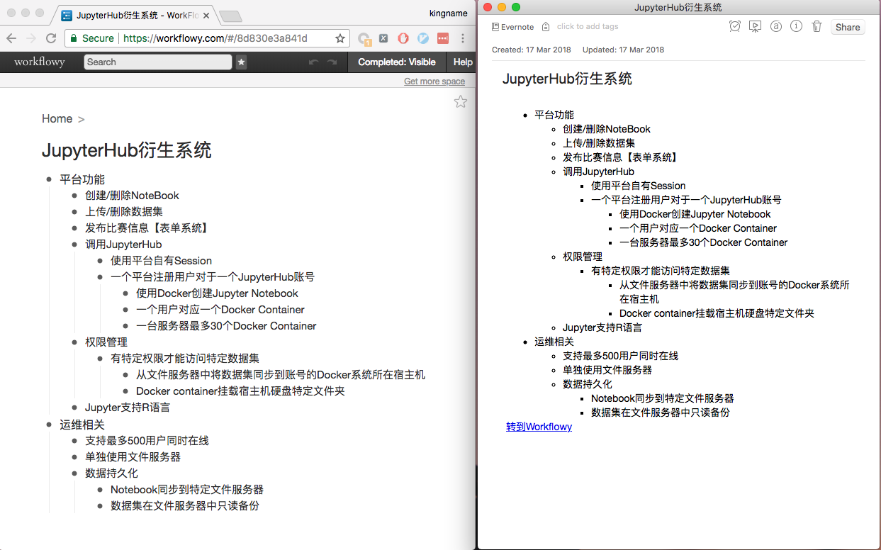 Everflowy基于Python 3开发,代码托管在Github中,地址为:github.com/kingname/Ev…这个小工具在持续开发中,目前可以实现Workflowy单向同步到印象笔记和差异更新。由于印象笔记的Oauth验证方式需要申请才能对正式的账号使用,但它又不会通过这种个人小工具的申请,所以目前暂时使用开发者Token。关于如何申请开通正式账号的开发者Token,在后文会有详细的说明。