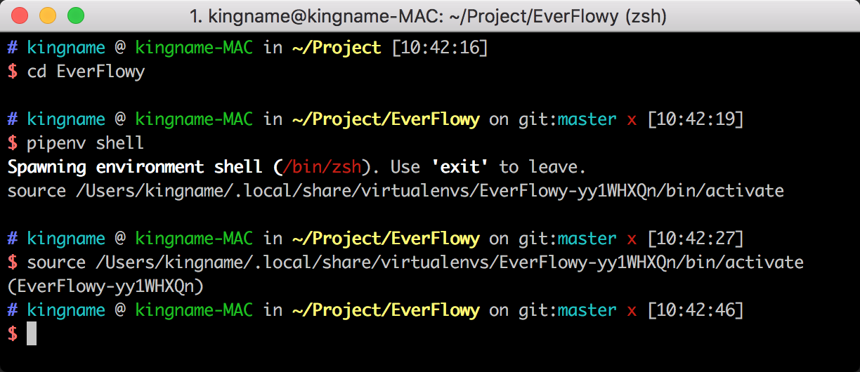 Pipenv会自动创建一个基于Virtualenv的虚拟环境,然后把EverFlowy依赖的第三方库自动安装到这个虚拟环境中,再自动激活这个虚拟环境。