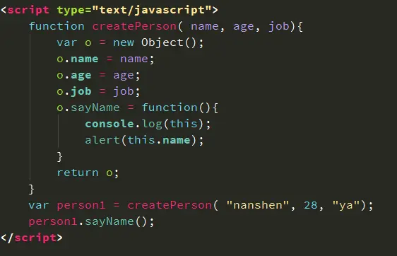var obj={ name:"dddd", say:function(){ alert(this.name); } }