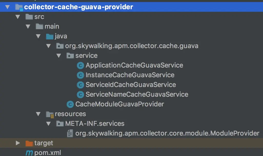 org.skywalking.apm.collector.cache.guava.CacheModuleGuavaProvider ,实现 ModuleProvider 抽象类,基于 Guava 的缓存组件服务提供者。