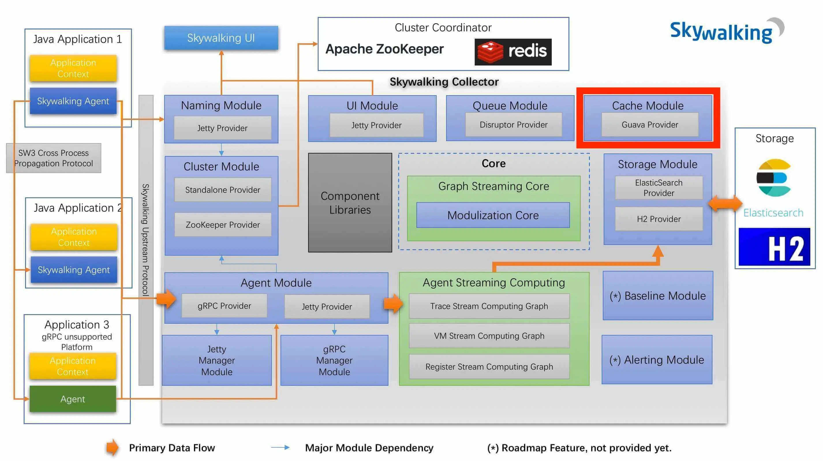 Cache Module 在 SkyWalking 架构图处于如下位置( 红框 ) :