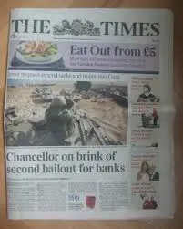 比较有意思的是,在比特币网络的第一个区块,也就是创世区块,中本聪把当天一条颇具讽刺意义的报道永久记录在区块里:“The Times 03/Jan/2009 Chancellor on brink of second bailout for banks.”,这句话正是泰晤士报当天的头版文章报道。当时正是英国的财政大臣达林被迫考虑第二次出手纾解银行危机的时刻。中本聪引用这句话,即是对区块产生时间的说明,又是对当时金融危急中旧有脆弱银行系统的嘲讽,同时也可能是对自身身份的隐藏。