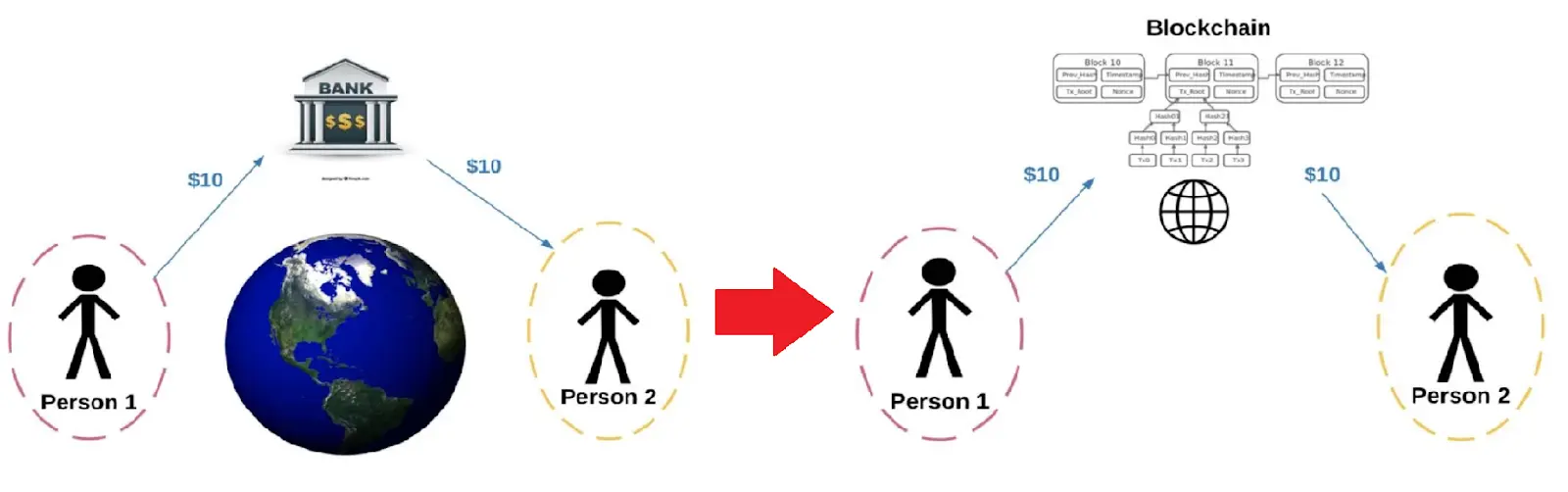 在一个中心化的网络中,我们是通过信任一个作为中介的第三方机构(如银行、支付宝、淘宝等),由它来背书保证,然后我们才可以放心进行各种交易。而区块链则通过现代密码学技术和共识算法(POW工作量证明),让我们可以实现去中心化,将信任从第三方机构转移到区块链网络。