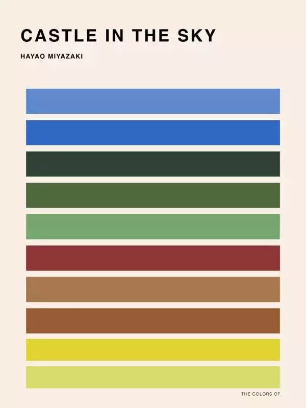 作为设计师,给我留下最直观印象的是宫崎骏老爷爷对色彩的把握和运用,并籍此为我们描绘出了一个个魔幻而又美丽的世界。