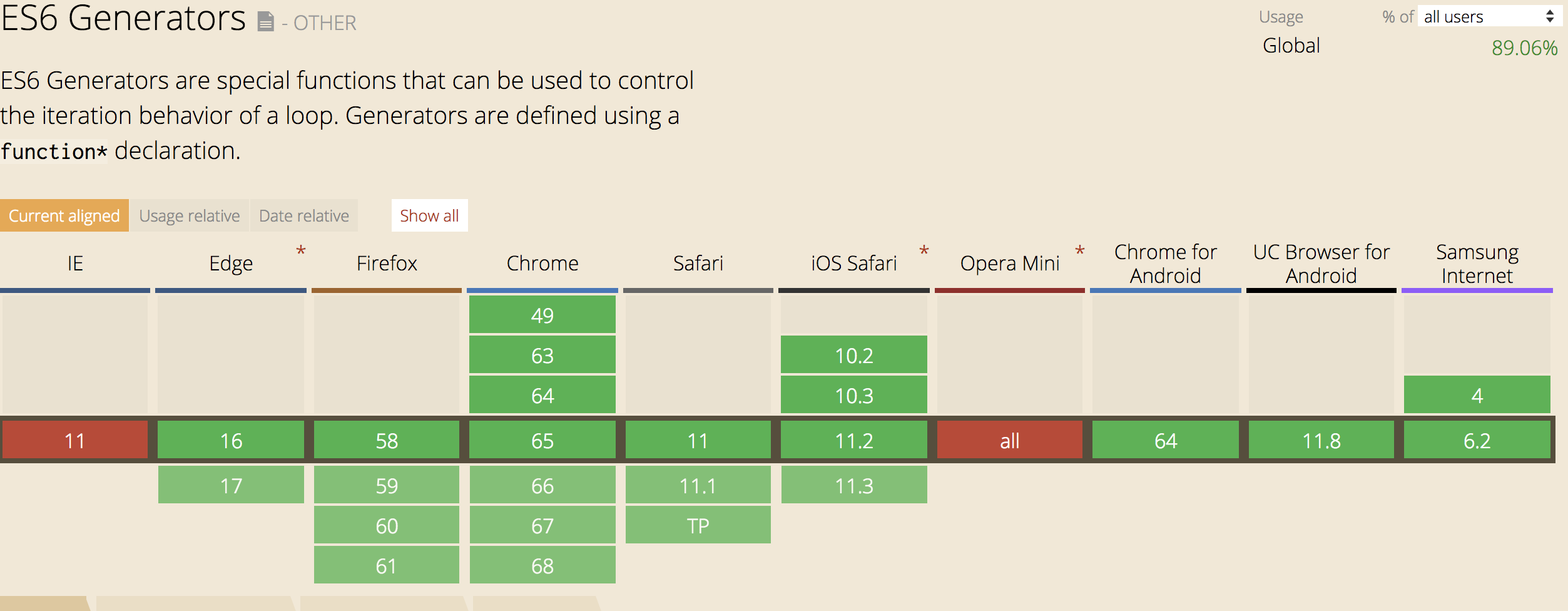 目前来说 浏览器对 generator 支持情况还是很不错的