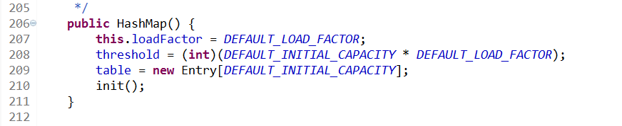 好了综上所诉建一个hashMap实例,实际就是初始化了一个数组table,长度为16,内部装Entry对象