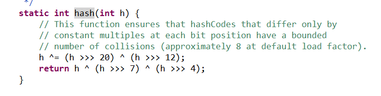 369行跳过,到327行key时String类型那么key.hashCode()一定是String的hashcode方法,计算值是96354(hashCode()详情将)在使用下面的hash()(>>>右移高位补0,^异或