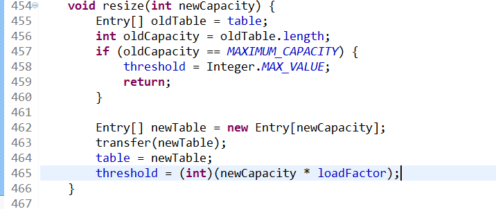 然后将newTable[]的引用赋值给table[],并将threshold重新赋值,