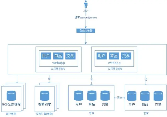 我们的网站演进到现在,交易、商品、用户的数据都还在同一个数据库中。尽管采取了增加缓存,读写分离的方式,但随着数据库的压力继续增加,数据库的瓶颈越来越突出,此时,我们可以有数据垂直拆分和水平拆分两种选择。