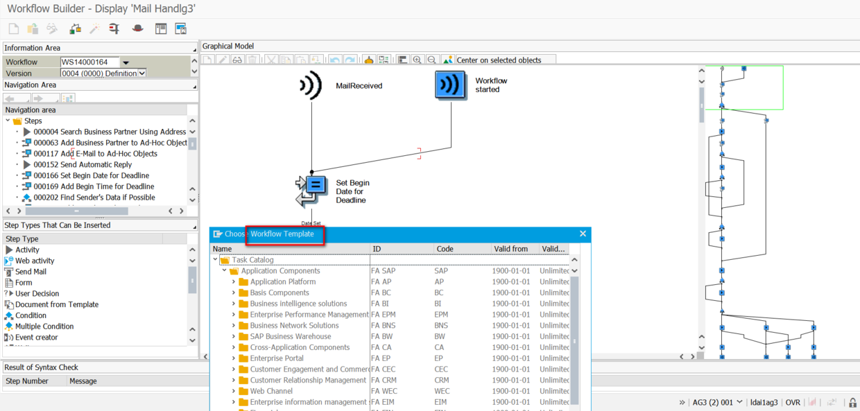 而应用层面使用的workflow,和ABAP workflow一样有所谓workflow template的概念。下图是ABAP workflow template的一个例子: